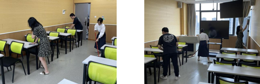 在清扫过程中,11名发展对象密切配合,使用扫把、簸箕等清洁工具清扫地面,用湿抹布擦拭课桌和椅子,检查责任区域是否有垃圾、杂物,公共设施是否破损,消防通道、无障碍通道是否占用。经过卫生清洁,公共区域焕然一新,为师生们营造了舒适、优良、整洁的教学环境。学院专职组织员沈奕对发展对象的劳动成果给予了肯定和鼓励,并激励11名发展对象切实践行全心全意为人民服务的根本宗旨。