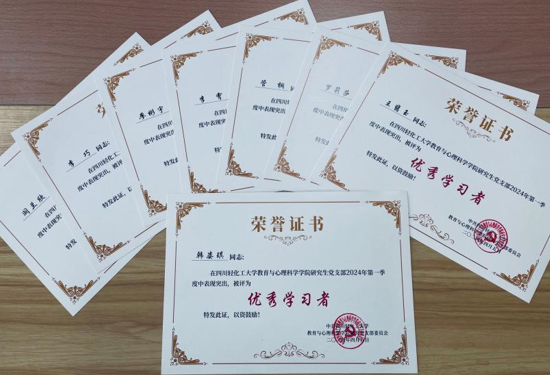此次评选过程严谨公正,依据学习强国积分、支部大会试卷成绩以及支部闭卷考核等综合表现,评选出了8名政治素质强的同志。经过激烈角逐,韩姿琪、管桐、李巧、廖彬宇、李霄、阙兰欣、罗莉莎、王翡玉同志脱颖而出,荣获2024年第一季度“优秀学习者”殊荣。获奖同志纷纷表示,将高效务实、创新价值观融入学习生活,将责任担当、团结精神铭记心间。颁奖仪式在支部书记沈奕的总结讲话中落下帷幕。她首先对获奖同志表示祝贺,鼓励他们珍惜荣誉,继续发挥模范带头作用,她勉励同学们要立志做有理想、敢担当、能吃苦、肯奋斗的新时代好青年。