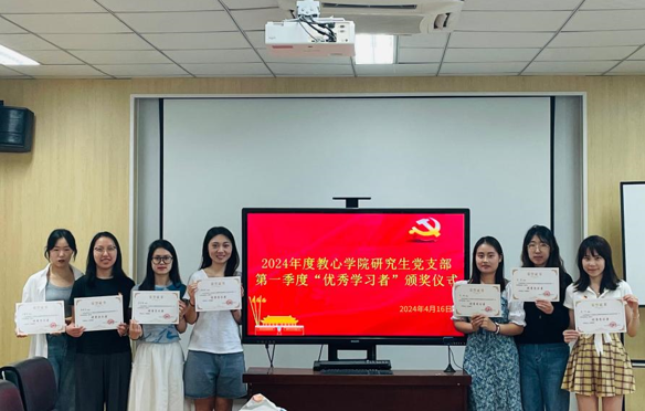 为进一步巩固拓展主题教育成果,激励党员和入党积极分子强化理论学习、提升党性修养,教心学院研究生党支部于4月16日在第四实验楼1501举行2024年第一季度“优秀学习者”颁奖仪式,由支部副书记莫云灏主持。