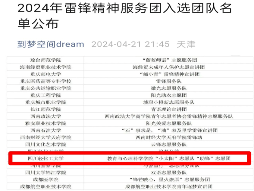 “2024年雷锋精神服务团”由雷锋杂志社现联合各地雷锋纪念馆、到梦空间以及各高校相关部门联合开展,小太阳志愿“助锋”志愿团已与自贡市贡井区青杠林社区、蓆草田社区、自流井区御景社区等社区开展20余次“学雷锋”主题系列志愿活动,取得了丰富的成效。
