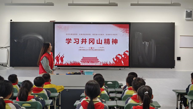 此次活动旨在通过宣讲的形式,向小学生介绍井冈山革命根据地的历史背景、革命先烈的英勇事迹以及井冈山精神的内涵,以激发孩子们的爱国热情,培养他们的历史责任感。活动伊始,宣讲团成员首先进行了井冈山的科普讲解,并通过生动的语言和丰富的图片资料,向学生们介绍了井冈山历史和井冈山精神。井冈山精神是红色革命精神之一,诞生于土地革命时期的井冈山根据地。井冈山精神是革命先辈跨越时空留给我们的宝贵财富。井冈山精神最重要的方面就是坚定信念、艰苦奋斗,实事求是、敢闯新路,依靠群众、勇于胜利。宣讲过程中,宣讲成员还以提问的形式,如提问学生是否知道井冈山精神的由来、井冈山精神中的杰出人物等来激发学生对井冈山精神的兴趣。活动现场气氛活跃,同学们表现出了对中华民族传统和井冈山精神的浓厚兴趣。活动结束后,同学们纷纷表示本次活动让他们深受教育和启发,他们定会铭记先辈的英勇事迹,传承红色基因,用实际行动践行中华民族优秀的精神文化。