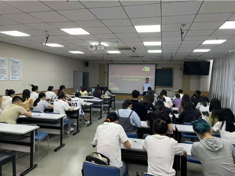 为进一步引导党员同志学习党规党纪,强化规矩意识,2024年5月15日,研究生党支部在第四实验楼1715专题学习新修订的《中国共产党纪律处分条例》,邀请学院党委副书记、院长谢华作专题辅导,会议由支部书记沈奕主持,研究生党支部全体党员及入党积极分子参会。