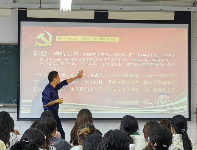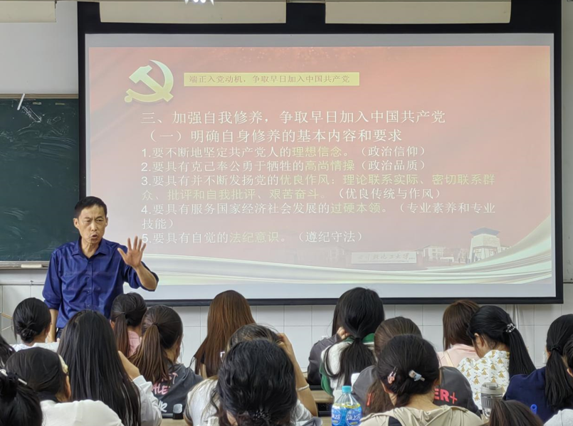 余老师分别从端正入党动机,严格要求自己,加强自我修养争取早日加入中国共产党三方面进行讲授。在端正入党动机方面,余老师详细阐述了端正入党动机的重要性及其实践方法,使同学们深刻理解了“初心”的深刻内涵;在严格要求自己方面,余老师列举了江竹筠、钟南山等优秀共产党员的例子,以此来鼓励同学们牢记历史,学习楷模;在加强自我修养方面,余老师则明确了成为共产党员的基本条件,勉励同学们在学习生活中严格要求自己,增强党性修养,端正入党动机,用科学的理论武装头脑,指导实践,在田野中、在实践中不断磨砺自己,为实现中华民族伟大复兴的中国梦贡献青春力量。