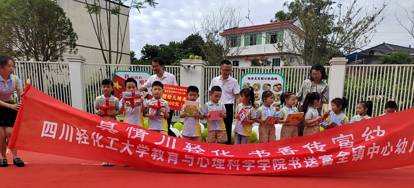 为贯彻落实国家乡村振兴战略,深化“高校+幼儿园”的合作互助,打造园校专业实践教学共同体,2024年5月31日,第74个六一国际儿童节来临之际,我校教育与心理科学学院党委书记杜鑫、教授委员会主任沈明泓教授走进自贡市沿滩区富全镇中心幼儿园,在富全镇中心幼儿园举行图书捐赠仪式,旨在进一步助推乡村振兴教育。自贡市沿滩区富全镇人民政府副镇长李强、沿滩区工商联书记余杰、富全镇商会会长郑文彬以及富全商会成员罗相全、熊俊、宗庆林、熊一兵等人共同参与了本次仪式。