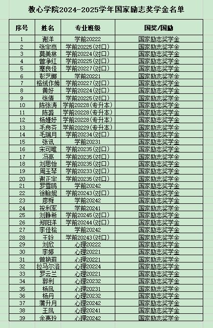 按照《四川轻化工大学关于开展2025年本专科国家奖助学金的评选工作通知》,经学生本人申请,学院评审小组评议,评选出2024-2025学年教育与心理科学学院本科生国家励志奖学金拟推荐名单如下,公示期为2025年10月13日-15日,在公示期间若有异议,请以真实姓名向教心学院学工办(N4S-1516)反映。联系电话:0813-5364835。