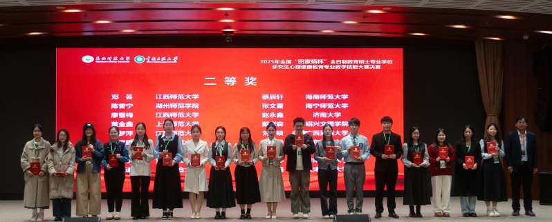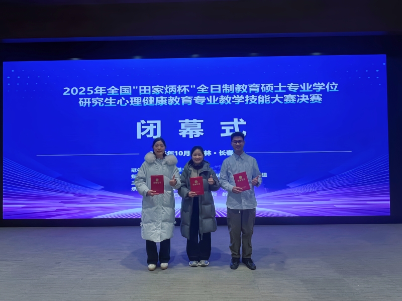 2025年10月17日 - 20日,全国“田家炳杯”全日制教育硕士专业学位研究生(心理健康教育专业)教学技能大赛在东北师范大学(吉林长春)举行。教心学院教育硕士专业学位(心理健康教育专业)研究生陈婉仪荣获全国二等奖,张佳、聂煜辰荣获全国三等奖;汪芮竹、郭思哲荣获优秀设计奖。