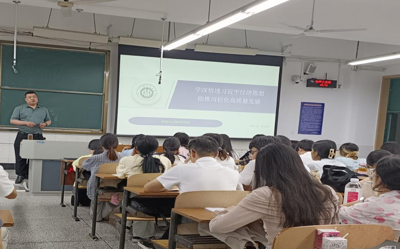 为着力强化新时代党员队伍建设,筑牢发展对象的政治根基与理想信念之基,10月11日上午9点,教育与心理科学学院党委书记张永锋在厚德楼412教室为教心学院、马克思主义学院、材料学院、土木学院的89名党员发展对象员授课。本次党课围绕“学深悟透习近平经济思想助推川轻化高质量发展”主题展开,旨在让学员领会思想精髓,明晰其对高校发展的指引作用,将理论化为推动学校发展的行动,明确新时代川轻化人的责任担当。