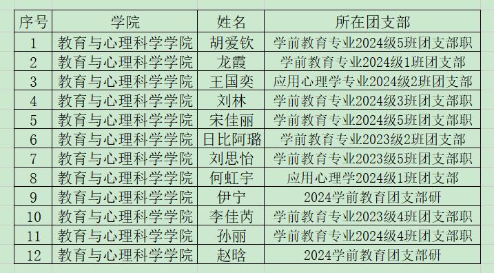 根据《中国共产主义青年团章程》有关规定,经学院各团支部推优,学院团委审核,拟将龙霞等12名同学确定为中国共产主义青年团发展对象,现将其基本情况予以公示,公示期为2025年10月29日-10月31日。公示期内,若有异议,请在工作时间内实名向教心学院团委反映。联系电话:0813-5364835。