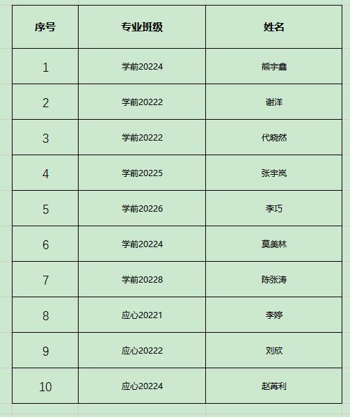 按照《四川轻化工大学关于开展2026届优秀毕业生评选工作的通知》安排,经2026届本科生毕业班同学自愿申请,学院奖勤助贷小组评议,拟推荐学前2022级4班熊宇鑫,学前2022级2班谢洋,应心2022级1班李婷等10名同学获评四川省优秀毕业生(具体名单如下图)。公示期为2025年11月10日-14日,在公示期间若有异议,请以真实姓名向教心学院学工办(N4S-1516)反映。联系电话:0813-5364835。