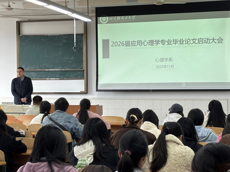 2025年11月13日上午,教育与心理科学学院应用心理学专业2022级于厚德楼N513教室隆重举行了“2022级毕业实习总结会暨毕业论文、就业动员大会”。本次大会旨在全面总结毕业实习成果,系统部署毕业论文工作,并积极动员学生迎接就业挑战。应用心理学2022级全体学生及多位教师代表齐聚一堂,会议气氛庄重而热烈。