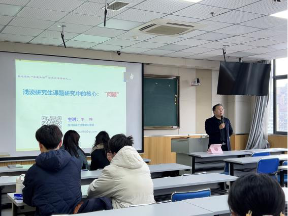 为搭建师生高效交流平台,助力研究生明确课题研究方向、强化问题意识,教育与心理科学学院于11月19日下午在第四实验楼1715教室开展了第二期“青蓝共话”学术沙龙活动,本次活动邀请李博副教授开展题为《浅谈研究生课题研究中的核心:“问题”》的专题讲座。本次活动延续“青出于蓝而胜于蓝”的核心理念,由“沙龙论坛”升级而来,以轻松自由的交流氛围,围绕研究生课题研究中的“问题”展开深度分享,24级、25级教育硕士研究生现场或网络参与。