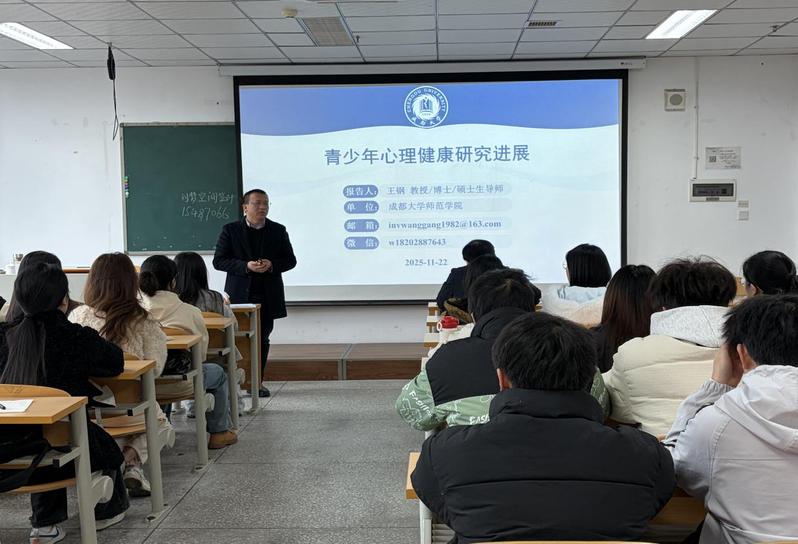 为积极回应社会对青少年心理健康的广泛关切,四川轻化工大学教育与心理科学学院于2025年11月22日下午特邀成都师范大学博士生导师王刚教授,在第四实验楼605举办题为“护航青春”的青少年心理健康专题讲座。