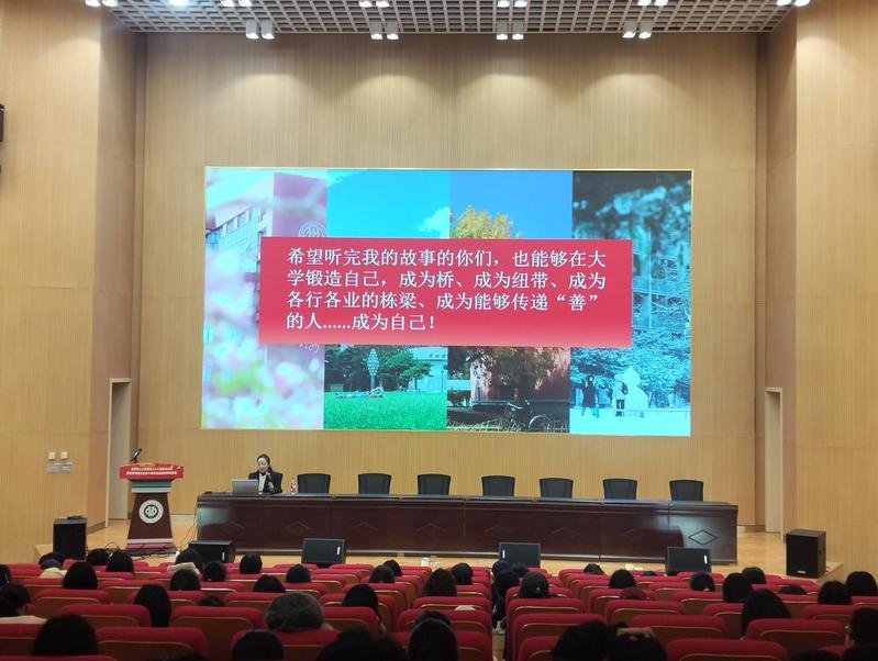 活动中,杨梅以“青春不设限,请勇往直前”为主线,结合自身从大学生到基层干部的成长历程,从三个层面展开分享:一是“选择奋进,用读书改写命运”,鼓励学子珍惜校园时光,刻苦学习;二是“选择感恩,在学校厚植根基”,倡导在实践中锤炼品格、回报社会;三是“选择担当,在基层锤炼成长”,强调青年应投身时代需要,在艰苦环境中锻炼成长。她通过讲述大学期间积极参与社会实践、调研活动的经历,诠释“读万卷书,行万里路”的真谛;并分享了自己毕业后扎根自贡基层、直面困难与质疑的奋斗故事,以实际行动证明青春可以在奉献中闪耀价值。整场演讲情感真挚、内容生动,为青年学生提供了一次与基层榜样对话的宝贵机会。杨梅的经历深刻阐释了“以青春之我,担时代之责”的精神内涵,激励在场同学在人生选择中锚定方向、勇于担当,以实际行动回应时代召唤。