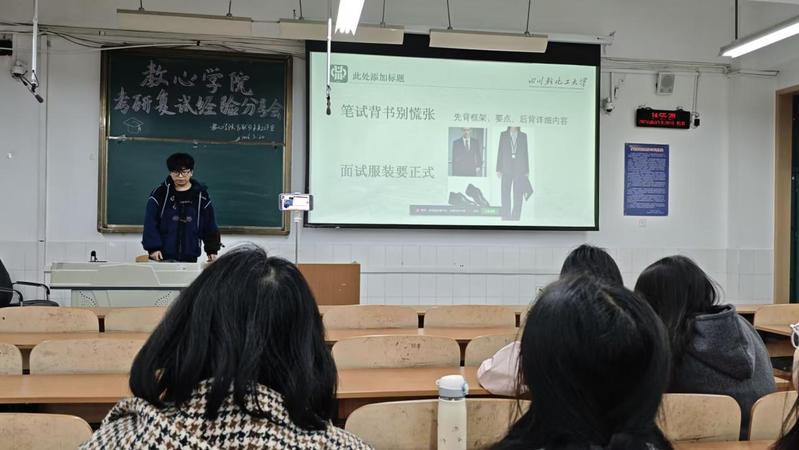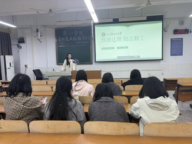 为助力考研学子精准把握复试要点、优化备考策略、调适应试心态,2026年3月20日下午,四川轻化工大学教育与心理科学学院携手“职”引未来工作室在厚德楼320教室举办“考研复试经验分享会”,并通过腾讯会议平台同步直播。本次活动十分有幸邀请了李明坤、王嘉琪、张忠惠、陈雨微四位在上届考研复试中取得优异成绩的学长担任分享嘉宾。