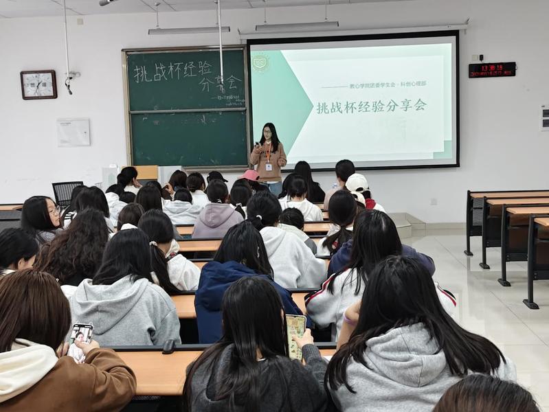 为帮助学子深入了解“挑战杯”竞赛、提升参赛能力,2026年3月25日下午,四川轻化工大学教育与心理科学学院科创心理部在李白河校区H1-208举办“挑战杯”经验分享会。本次活动由陈欣然同学担任主讲人,吸引了众多同学踊跃参与。