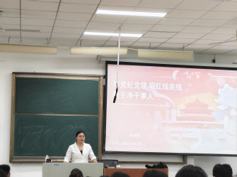 为进一步强化入党积极分子和发展对象的党性修养与纪律意识,筑牢思想防线,4月15日14时30分,教育与心理科学学院党委副书记、纪委书记谢晓辉在汇东校区厚德楼108教室,为教心学院和经济学院的入党积极分子及发展对象讲授专题党课。本次党课以“学党纪党规,明红线底线,做干净干事人”为主题,帮助青年学子深刻理解党的纪律规矩,明确行为边界,为成长为合格共产党员夯实思想基础。